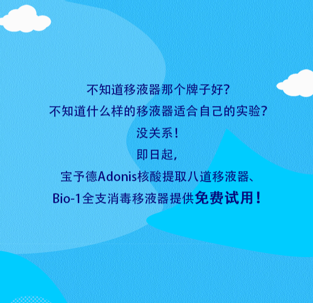 寶予德Bio-1全支消毒移液器、Adonis核酸提取八道移液器提供免費(fèi)試用!