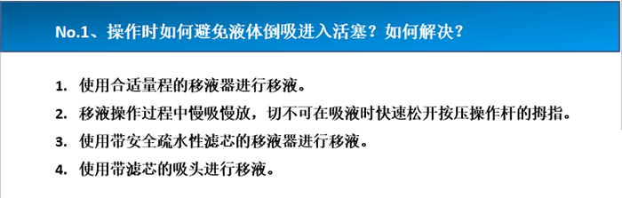☞ 1.操作時液體容易倒吸進入活塞?