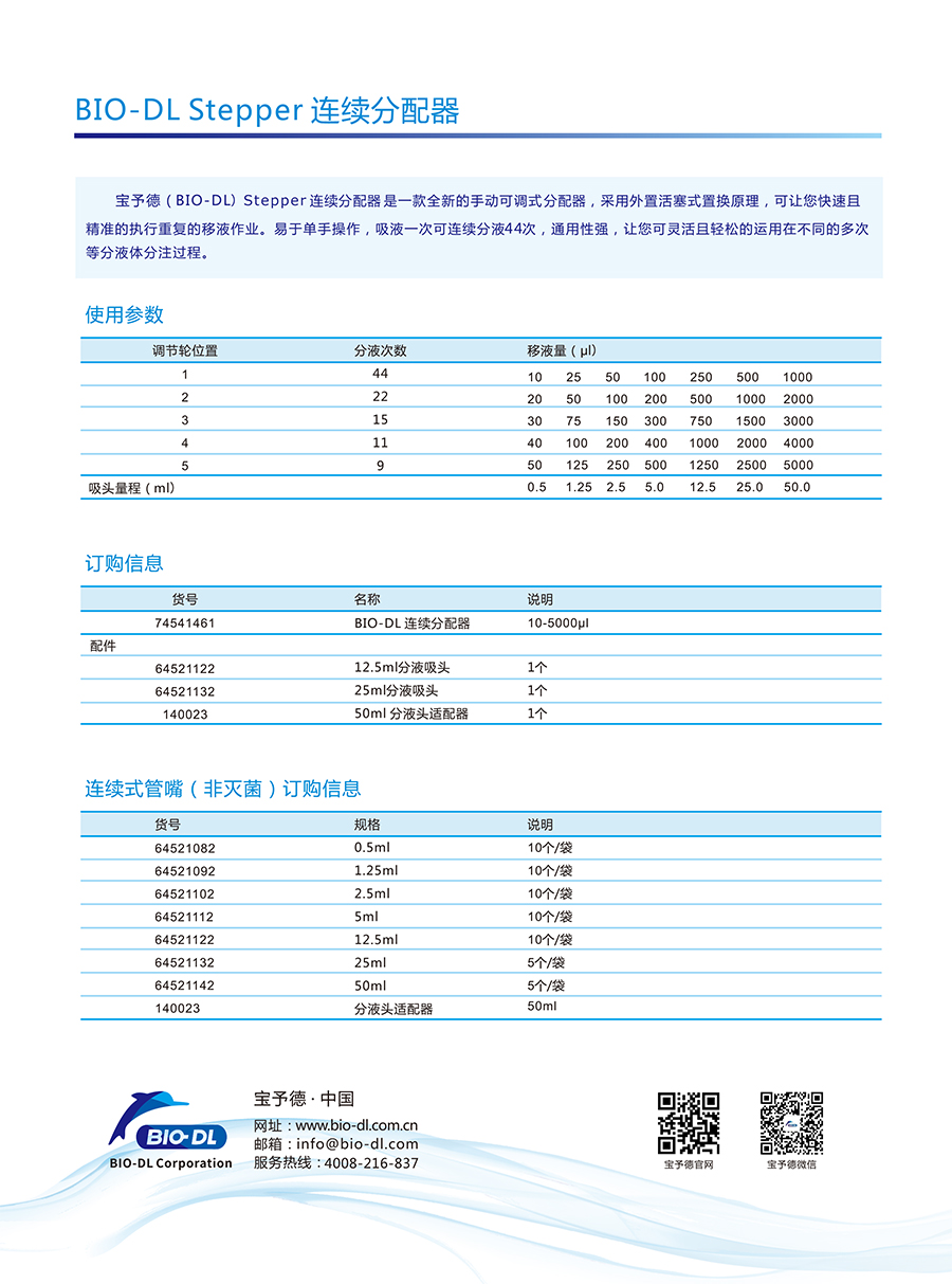 Stepper連續(xù)分配器是一款全新的手動可調(diào)式連續(xù)分配器,采用外置活塞置換原理,可讓您快速且精確的執(zhí)行重復(fù)的移液作業(yè)。
